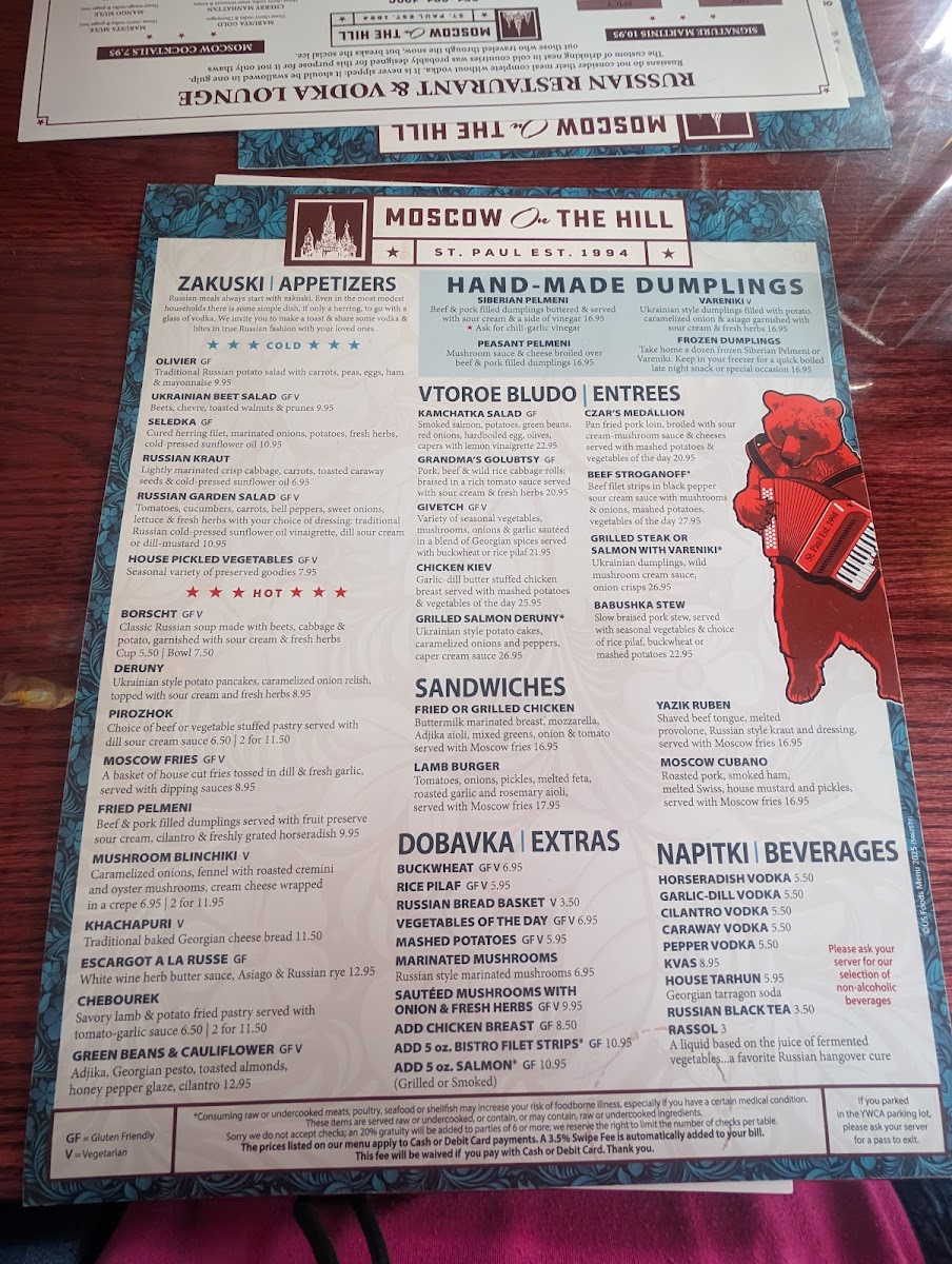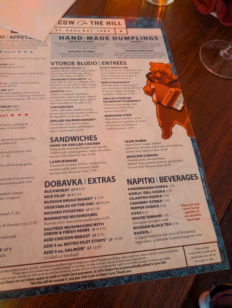 Shaved beef tongue with melted provolone and Russian style Kraut. Served with Moscow Fries.